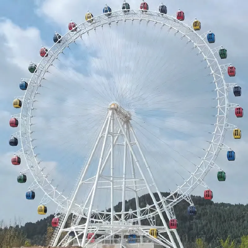 Колесо обозрения, поддерживаемое восемью колоннами, отличается высокой устойчивостью, обеспечивая гонщикам душевное спокойствие во время этого захватывающего приключения. Мотор-редуктор обеспечивает плавную и надежную работу с минимальным шумом и комфортом при езде. Красивый внешний вид колеса обозрения в сочетании с его надежностью и эффективностью работы делают его выдающимся аттракционом, который обязательно очарует посетителей и подарит гостям незабываемые моменты.